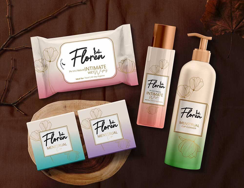 Keep it feminine and beautiful without any clutter on the front of the packagings.