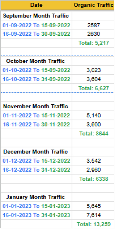 - Organic Traffic by Dec 2023 (After SEO): 13,000+/month
